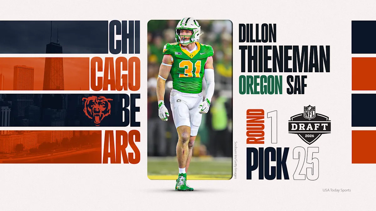 The Oregon Ducks could not have asked for much more from safety Dillon Thieneman last season when he transferred to Eugene after two seasons at Purdue. Now, after a big season with the Ducks and a monster performance at the NFL scouting combine, Thieneman was selected by the Chicago Bears with the No. 25 pick in the first round of the 2026 NFL Draft.